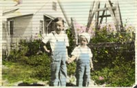During the first year Hilda and Louis were married (1930) Louis's Dad (George Fredrich) started building a house on acres he had. (The place, near George's farm, had a barn, windmill and granary on it, but no house.) The following are from Hilda Hellbusch's notes: "When we could, we would go over there and help. I helped his Dad stain and varnish wood work and Louis did some of the carpenter work as we were to live there. Frank Breasler was the carpenter. In March, 1931 we moved into the new little house. Four rooms down and upstairs not finished, not even a floor. Our first davenport was made from a car seat on a wooden frame Louis made. Put a cover on it and looked real nice. Our dining room set seemed pretty big for the size of the rooms, but worked out o.k. Had a pantry, too. Somebody said it looked like a little doll house. We were pretty happy in it and on September 19, 1931 our first son was born in that house. How proud we were. Big 10 lb. Louis Donley." |
